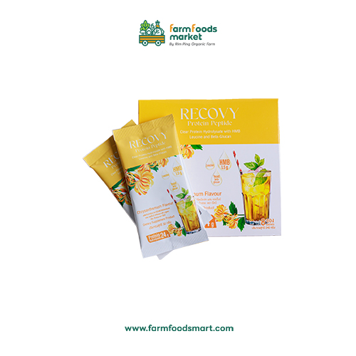 ผลิตภัณฑ์เสริมอาหารโปรตีนใสไฮโดรไลเสท กลิ่นชามะนาว ตรารีโควี่ บรรจุ 8 ซอง x 30 กรัม