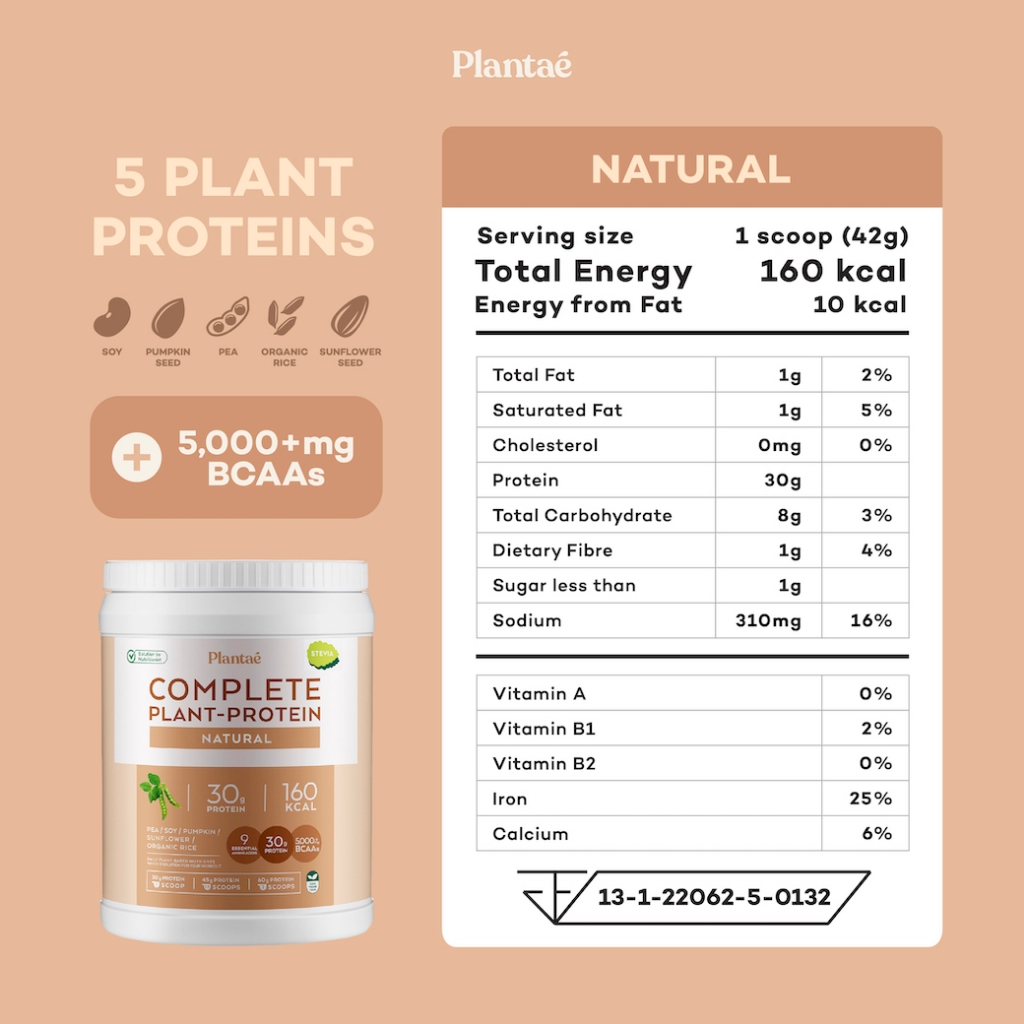 โปรตีนพืช Plantae Complete Plant Protein Active BCAAs Collection แคลอรี่ต่ำ ความหวานจากธรรมชาติ "Stevia" โปรตีนพืช 5 ชนิด จากถั่วลันเตาคัดพิเศษ ข้าวออร์แกนิค ถั่วเหลือง เมล็ดฟักทอง และเมล็ดทานตะวัน มีโปรตีนสูงถึง 30g ช่วยเสริมปริมาณโปรตีนที่ควรได้รับในแต่ละวัน มีกรดอะมิโนจำเป็นครบทั้ง 9 ชนิด ที่ร่างกายไม่สามารถสร้างเองได้ และ Plus BCAAs ที่ช่วยในการเสริมสร้างกล้ามเนื้อได้อย่างมีประสิทธิภาพ ลดการบาดเจ็บกล้ามเนื้อจากการออกกำลังกาย